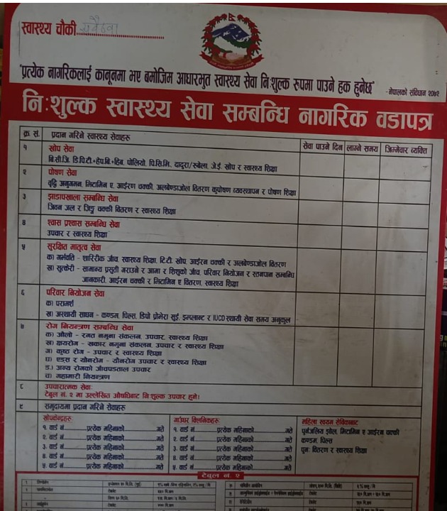 स्वास्थ्य शाखा तर्फका योजनाहरु
