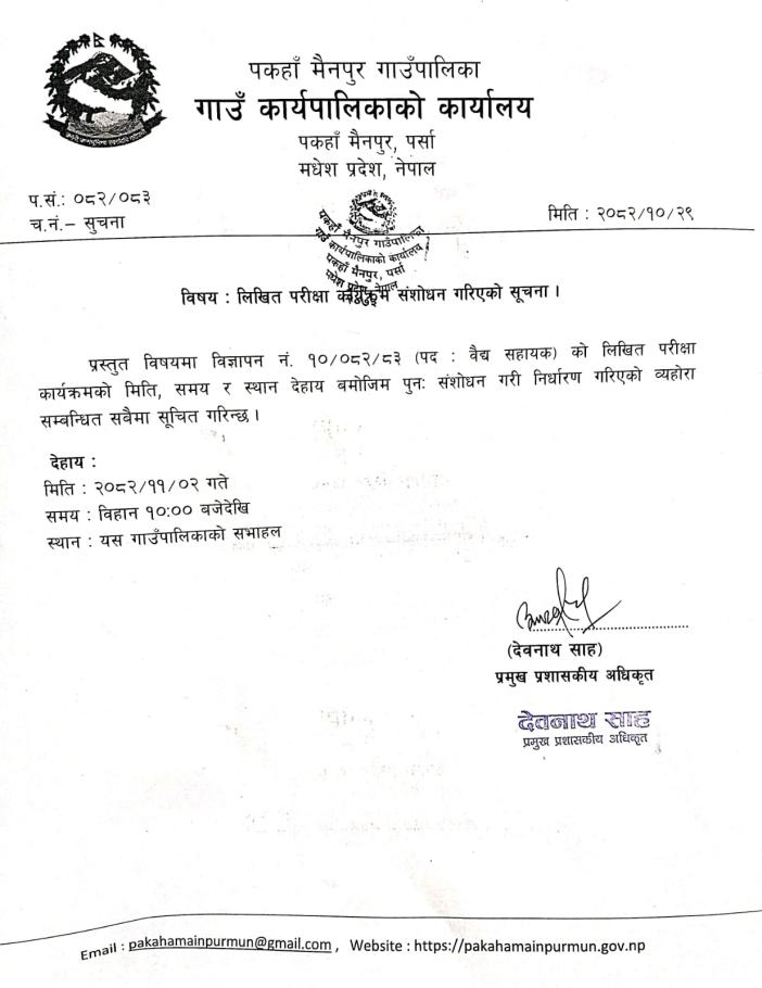 लिखित परिक्षाको मिति संशोधन सम्बन्धमा।