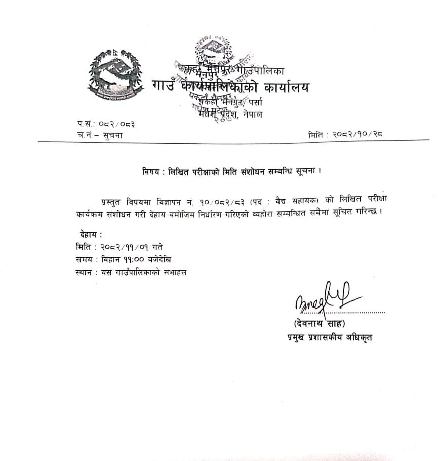 लिखित परिक्षाको मिति संशोधन सम्बन्धमा।