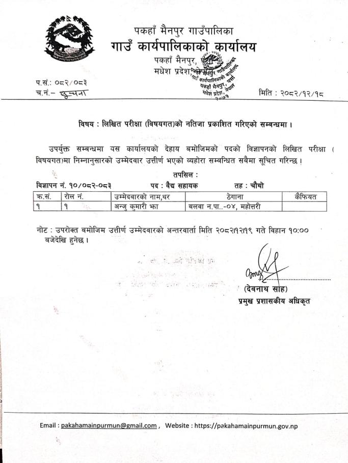 लिखित परीक्षाको मिति परिवर्तन सम्बन्धमा ।
