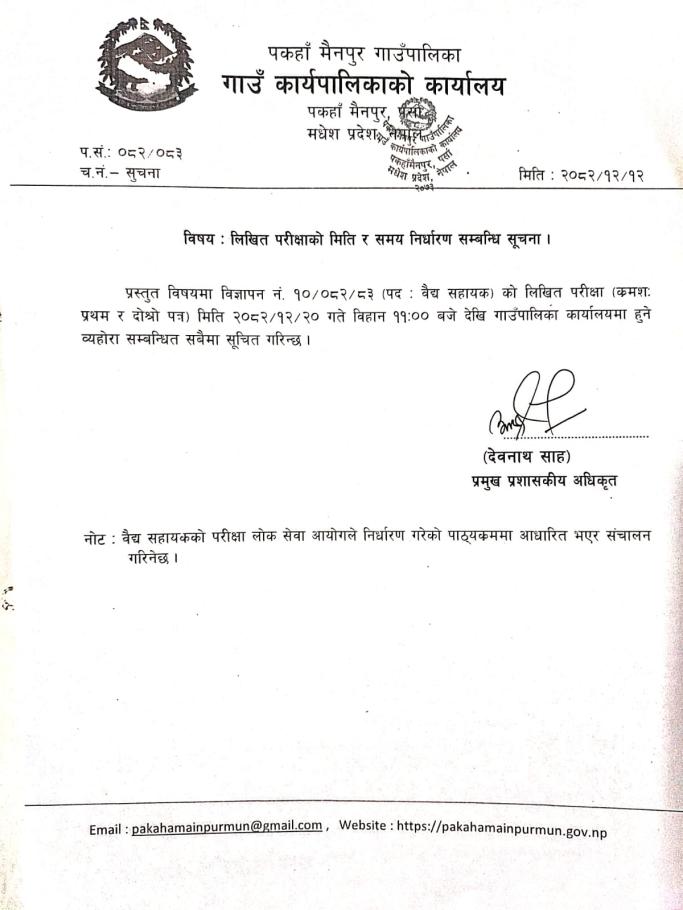 » लिखित परीक्षाको मिति र समय निर्धारण सम्बन्धी सूचना