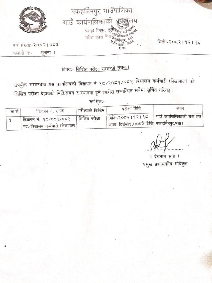 लिखित परीक्षाको मिति परिवर्तन सम्बन्धमा ।