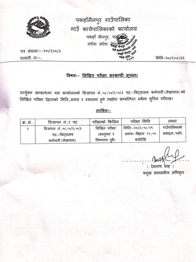 लिखित परीक्षाको नतिजा प्रकाशित गरिएको