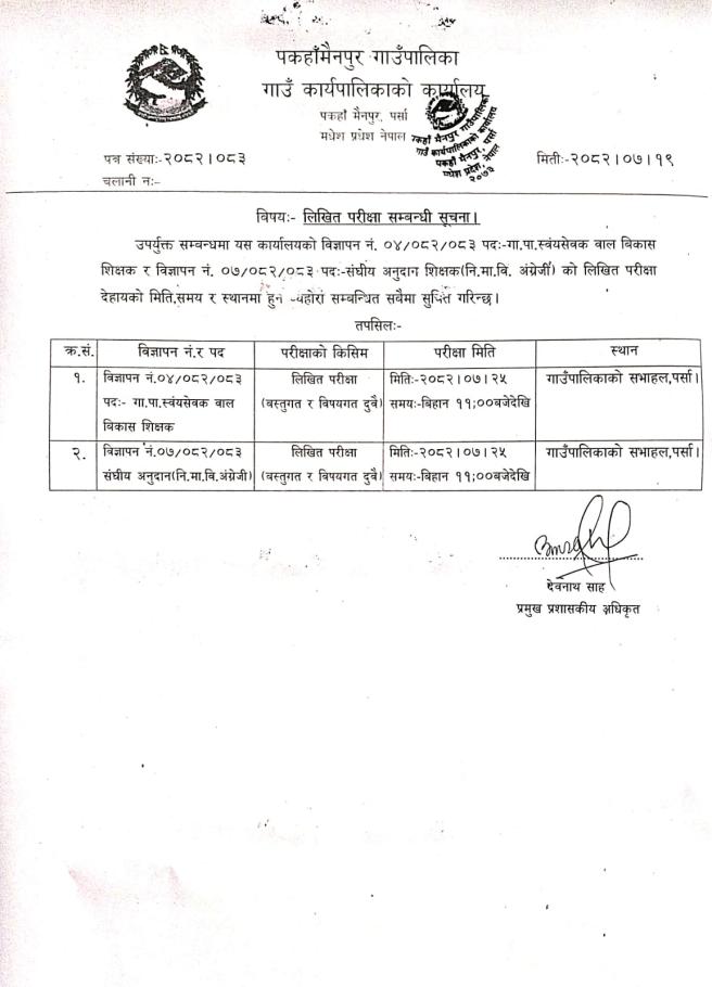» लिखित परीक्षा सम्बन्धी सूचना।