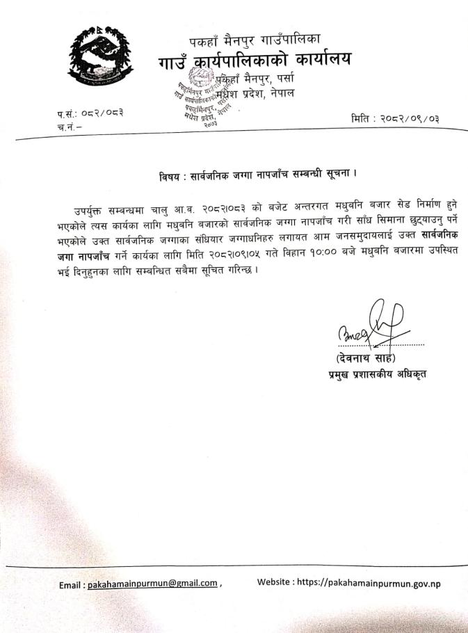 » सार्वजनिक जग्गा नापजाँच सम्बन्धि सूचना