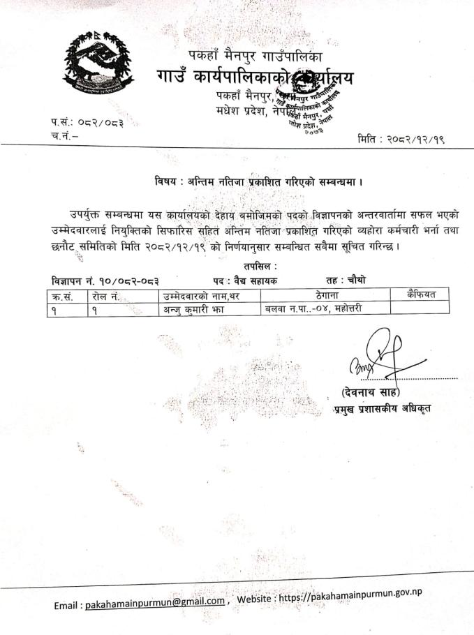 » अन्तिम नतिजा प्रकाशित गरिएको