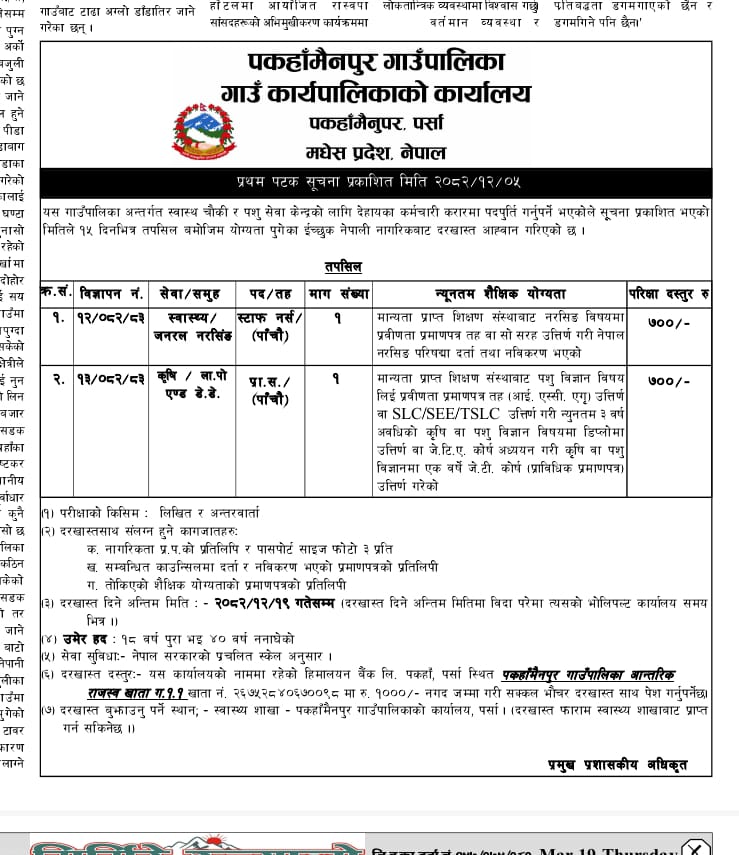 करारमा पदपूर्ति सम्बन्धमा।