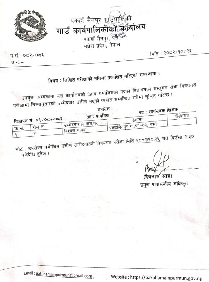 » लिखित परीक्षाको नतिजा प्रकाशित गरिएको।