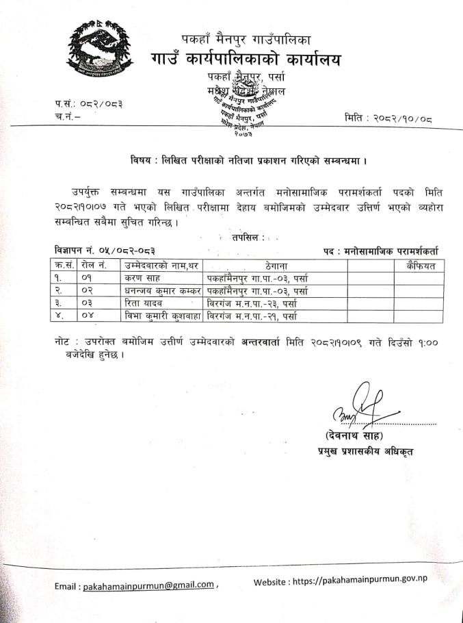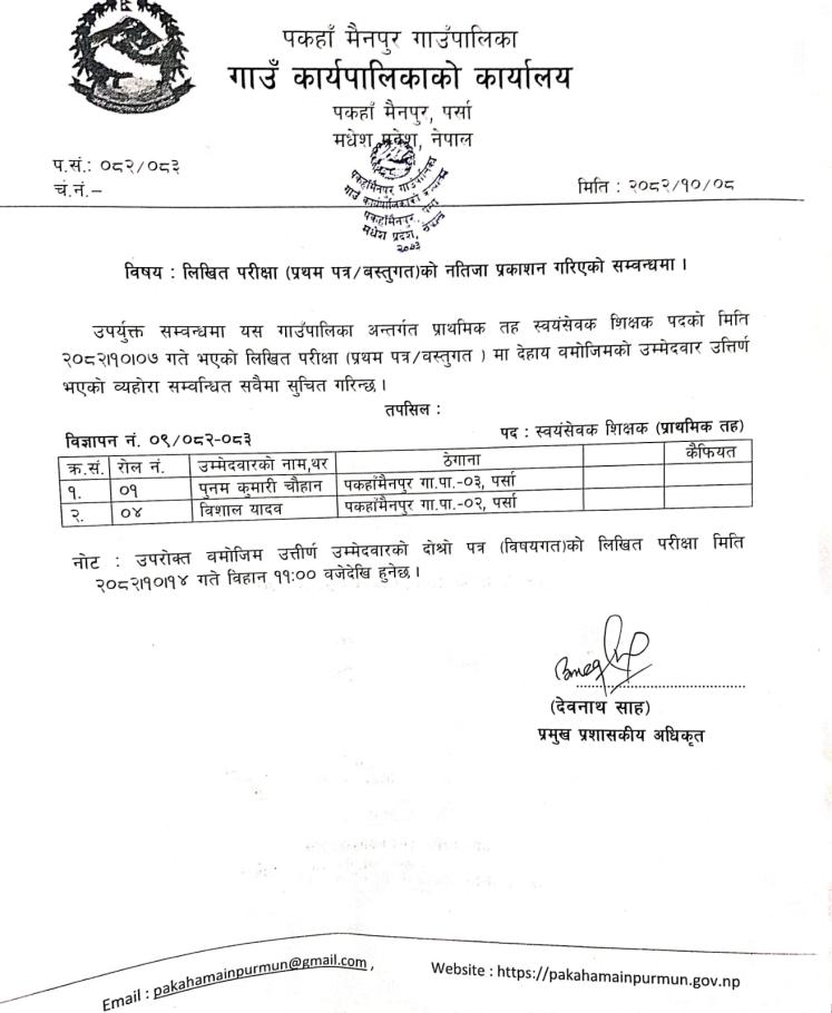लिखित परीक्षाको नतिजा