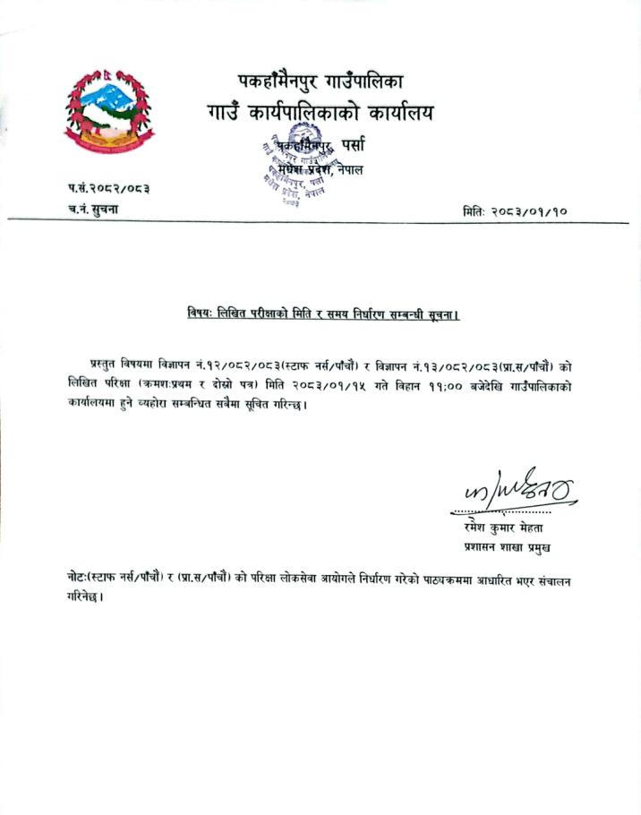 लिखित परीक्षाको मिति र समय निर्धारण