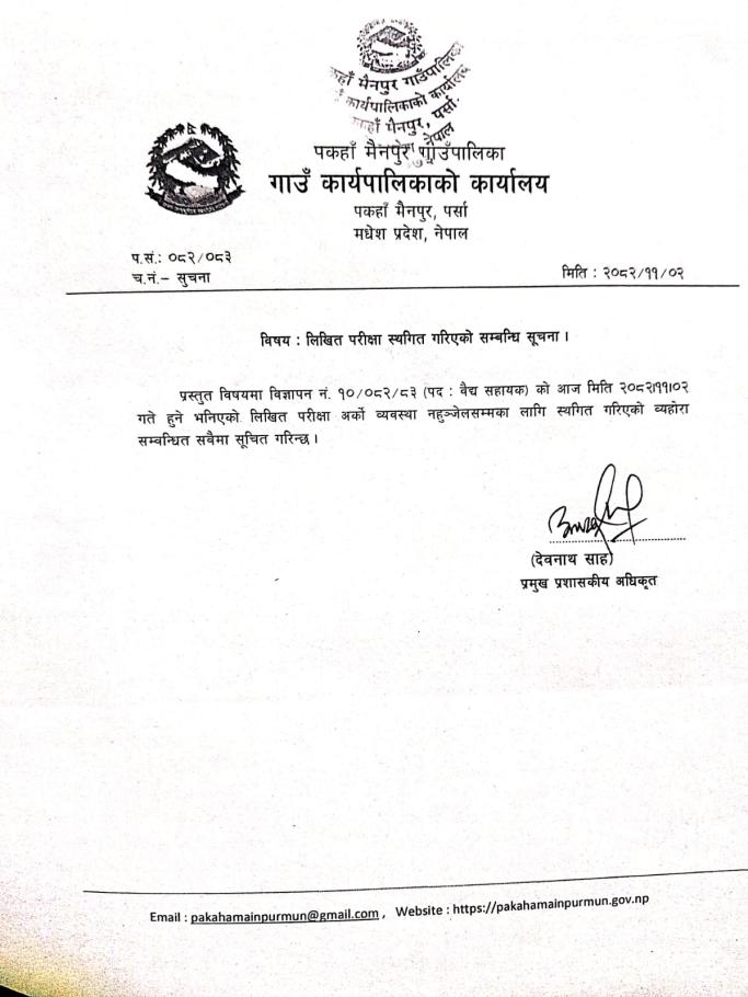 लिखित परीक्षा स्थगित गरिएको