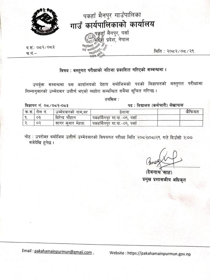 लिखित परीक्षाको नतिजा प्रकाशित गरिएको
