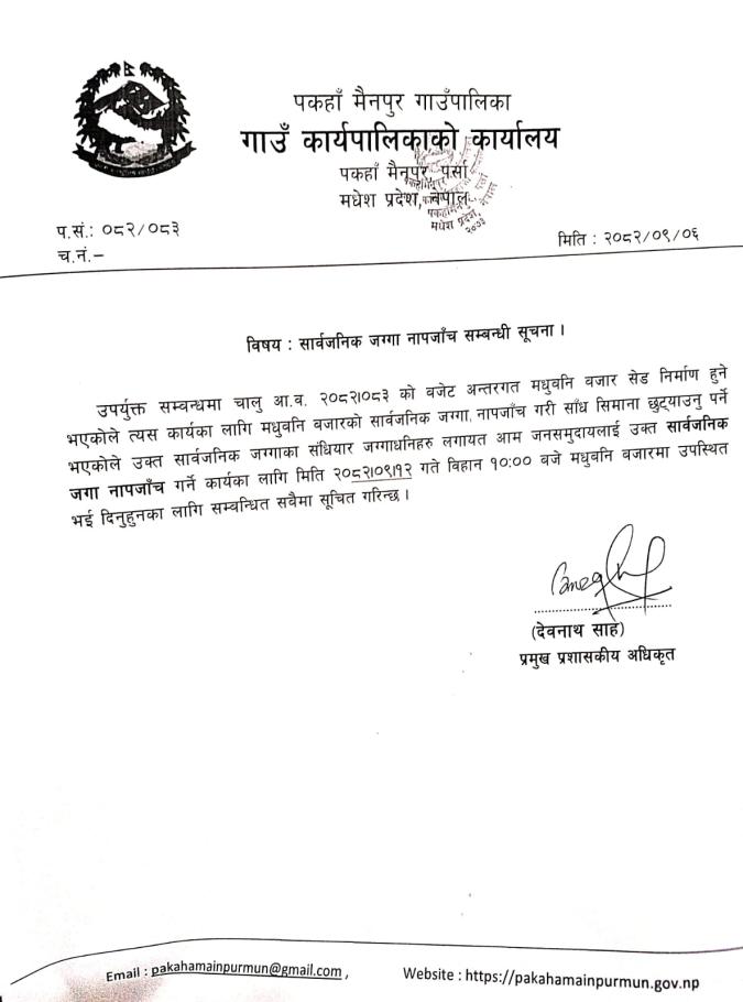 सार्वजनिक जग्गा नापजाँच सम्बन्धी सूचना ।