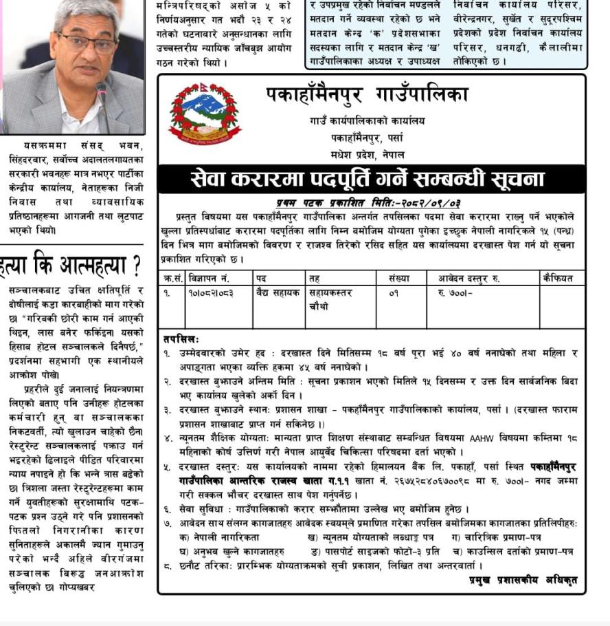 सेवा करारमा पदपूर्ती गर्ने सम्बन्धी सूचना